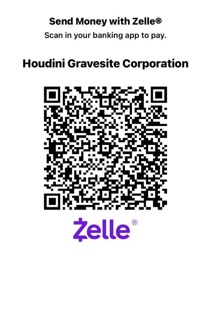 The Houdini Gravesite Corporation was incorporated in 2024 specifically to centralize and coordinate all activities pertaining to the gravesite. We are a 501(c)(3) corporation and can receive tax-deductible contributions to repair, replace, and maintain the gravesite under the law and regulations of the Department of Cemeteries of the State of New York. Our board has a director, George Hardeen, who is one of the surviving blood relatives of the Weiss family, a grandson of Theodore Hardeen, Houdini’s brother. We will be seeking historical landmark status for the gravesite.